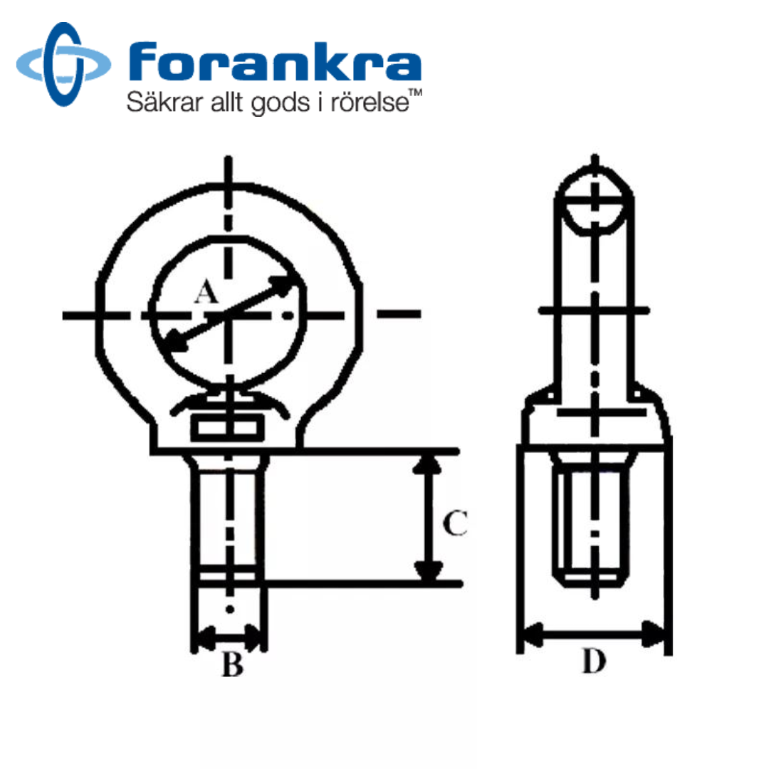 M8 – A: 20mm, B: M8, C: 13mm, D: 20mm